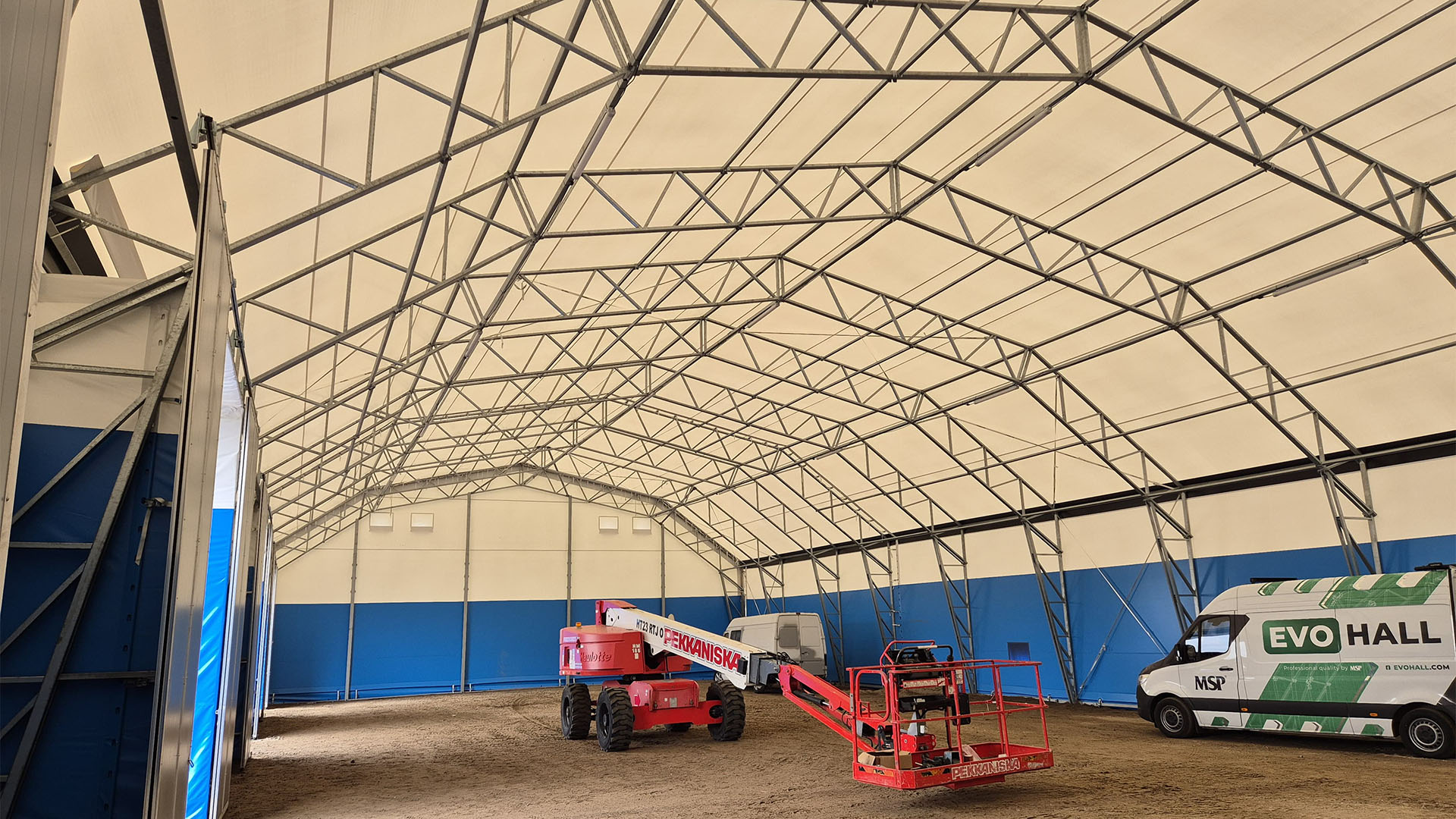 Kevytrakenteinen PVC-halli on mahdollista purkaa ja pystyttää uudelleen. Tarjoamme mahdollisuuden siirtää hallisi toiseen paikkaan tarvittaessa. Tämä antaa toiminnallesi liikkumavaraa ja mahdollisuuden sopeutua muuttuviin tarpeisiin ilman suuria investointeja ja pitkiä rakennushankkeita.