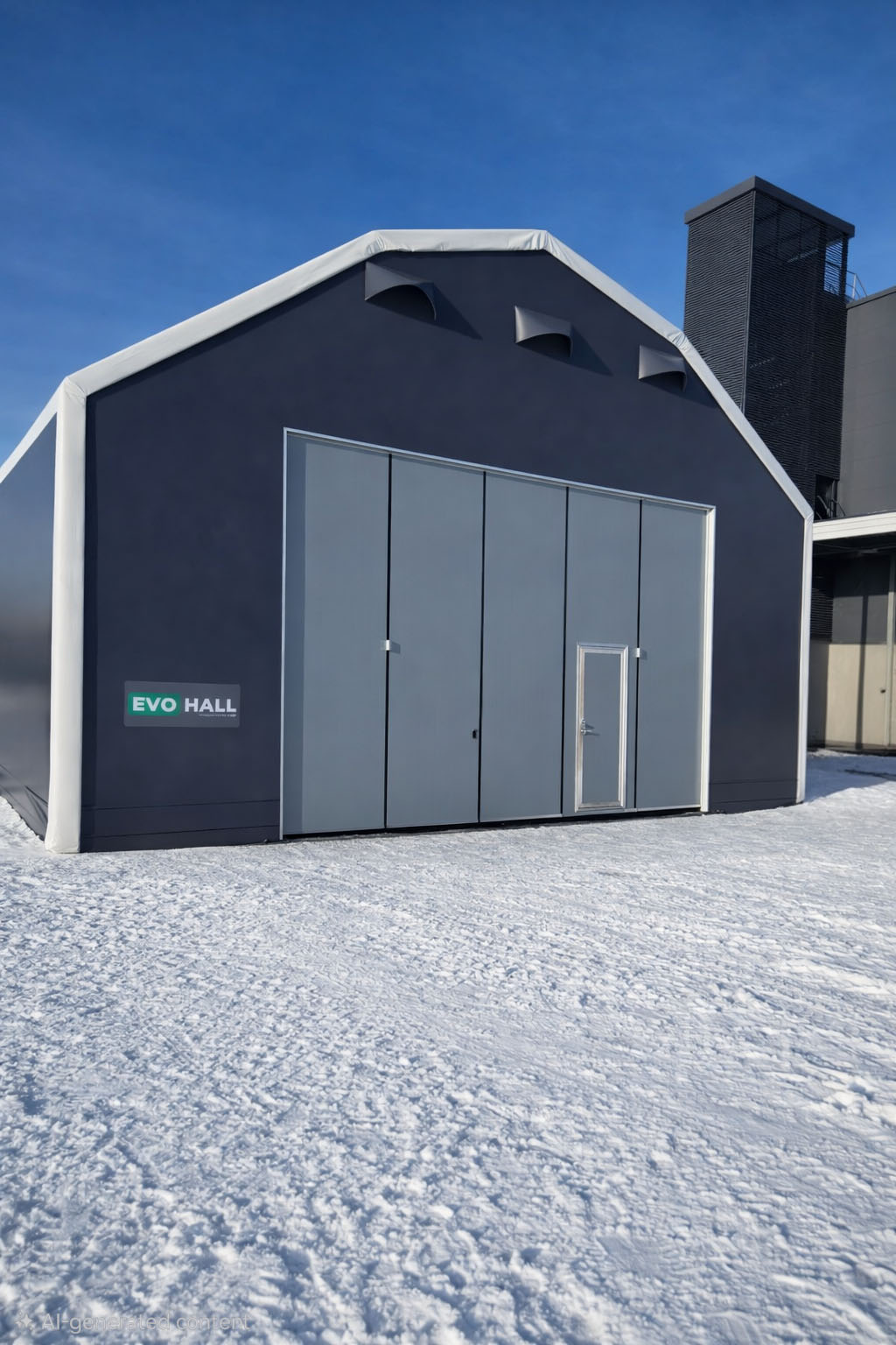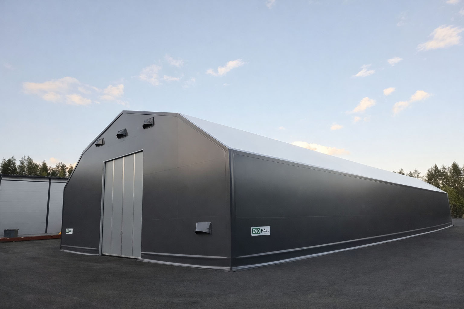 Evohallien teräsrungoille ja PVC-kankaille myönnetään tavanomaista pidempi viiden vuoden takuu. Lisävarusteiden ja ovien takuut valmistajien takuuohjeiden mukaisesti.